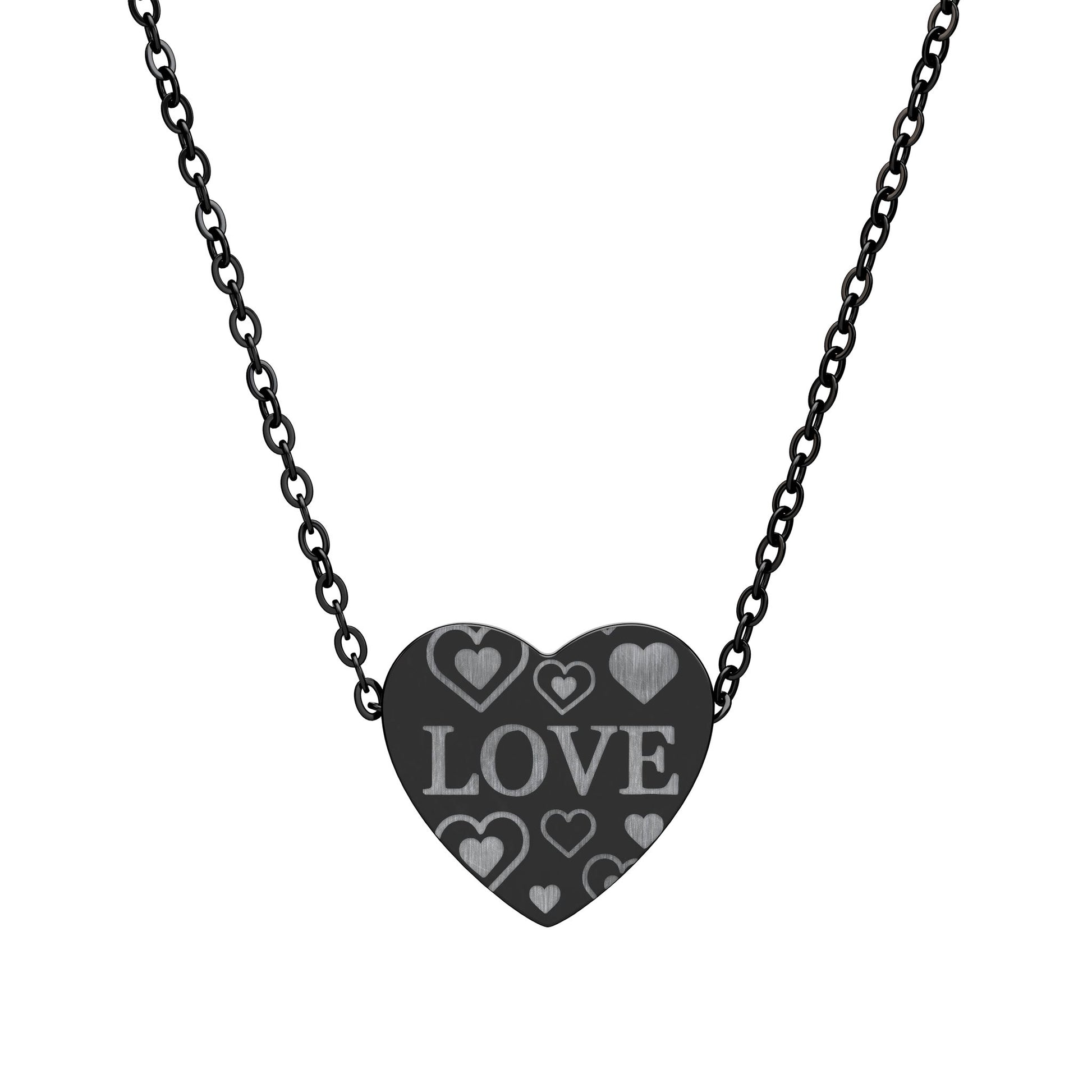 - Laser-engraved permanent "LOVE" and heart motif