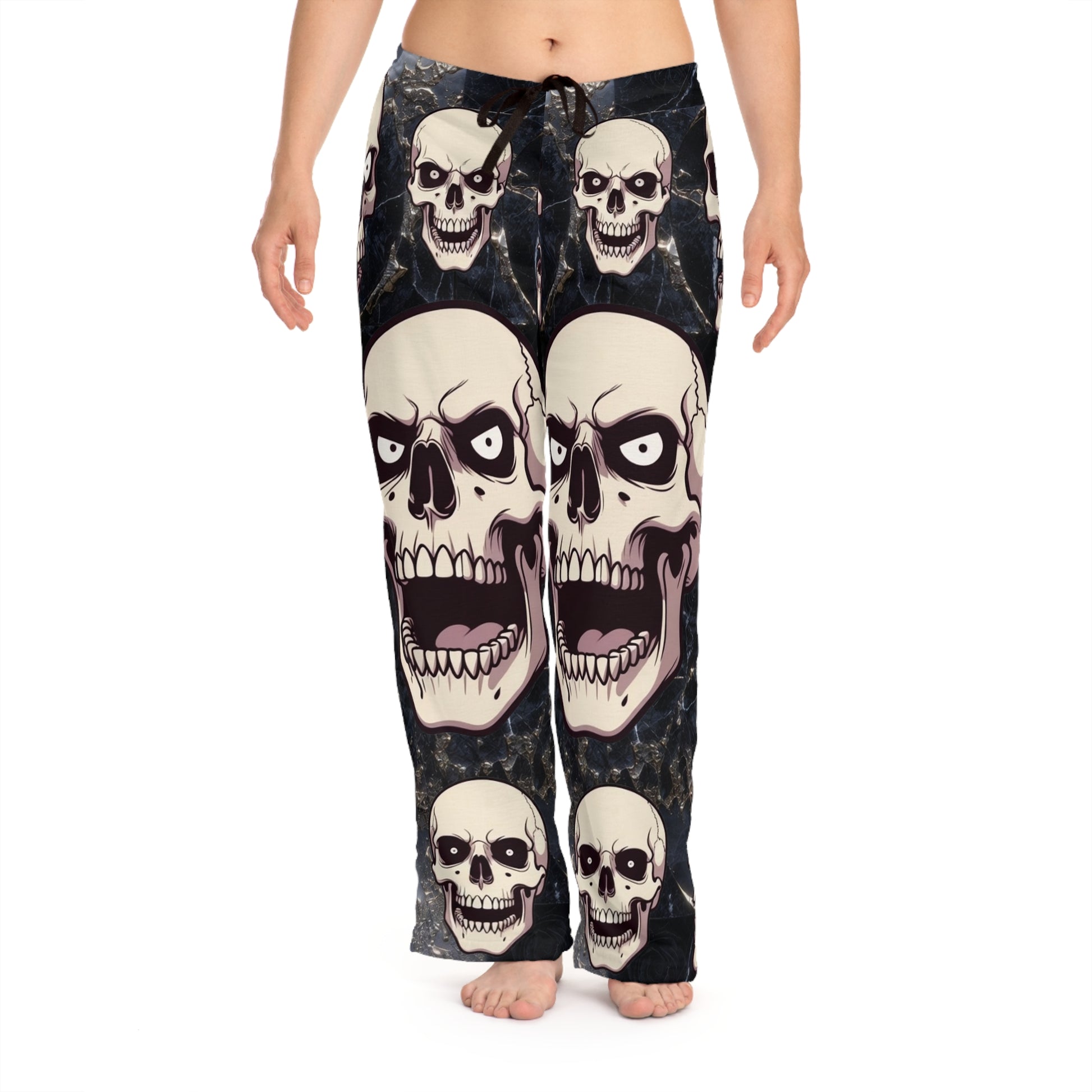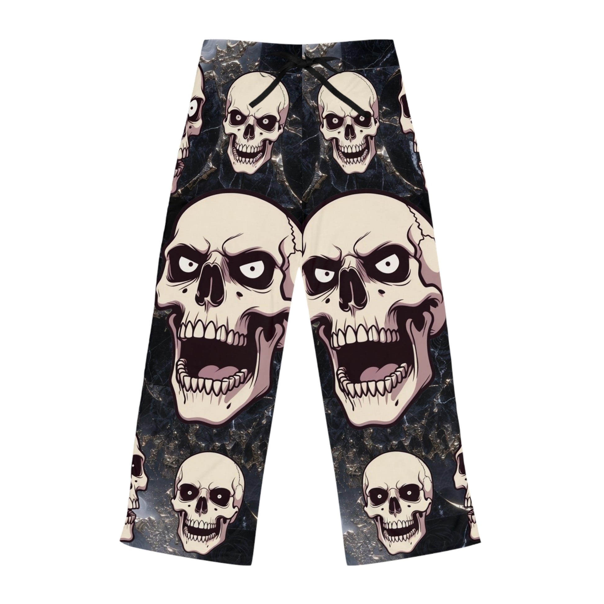 Slide into something that speaks to your darker, playful side. These lightweight pajama pants wrap you in cozy, breathable polyester with an all-over skull print that's equal parts cheeky and bold. The relaxed cut and elastic back let you move easily through late-night movie marathons, midnight sketch sessions, or slow Sunday mornings with a mug of coffee. The drawstring waist gives a tailored fit while the double-stitched seams promise nights of dependable wear. Let the grinning skulls do the talking — these pants fit nights when you want comfort without losing edge.