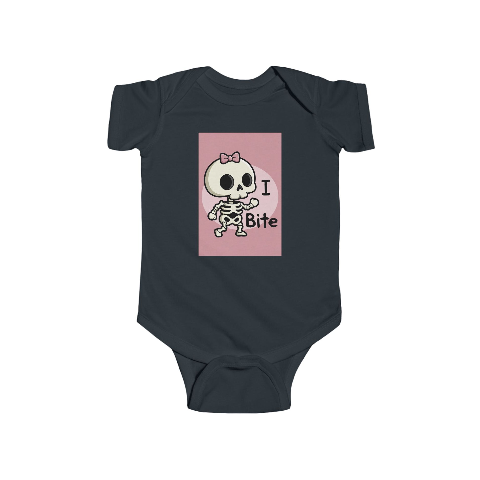Phoenix Girls Infant Bodysuit — Cute Skeleton “I Bite” Baby Onesie (Pink & Blue)