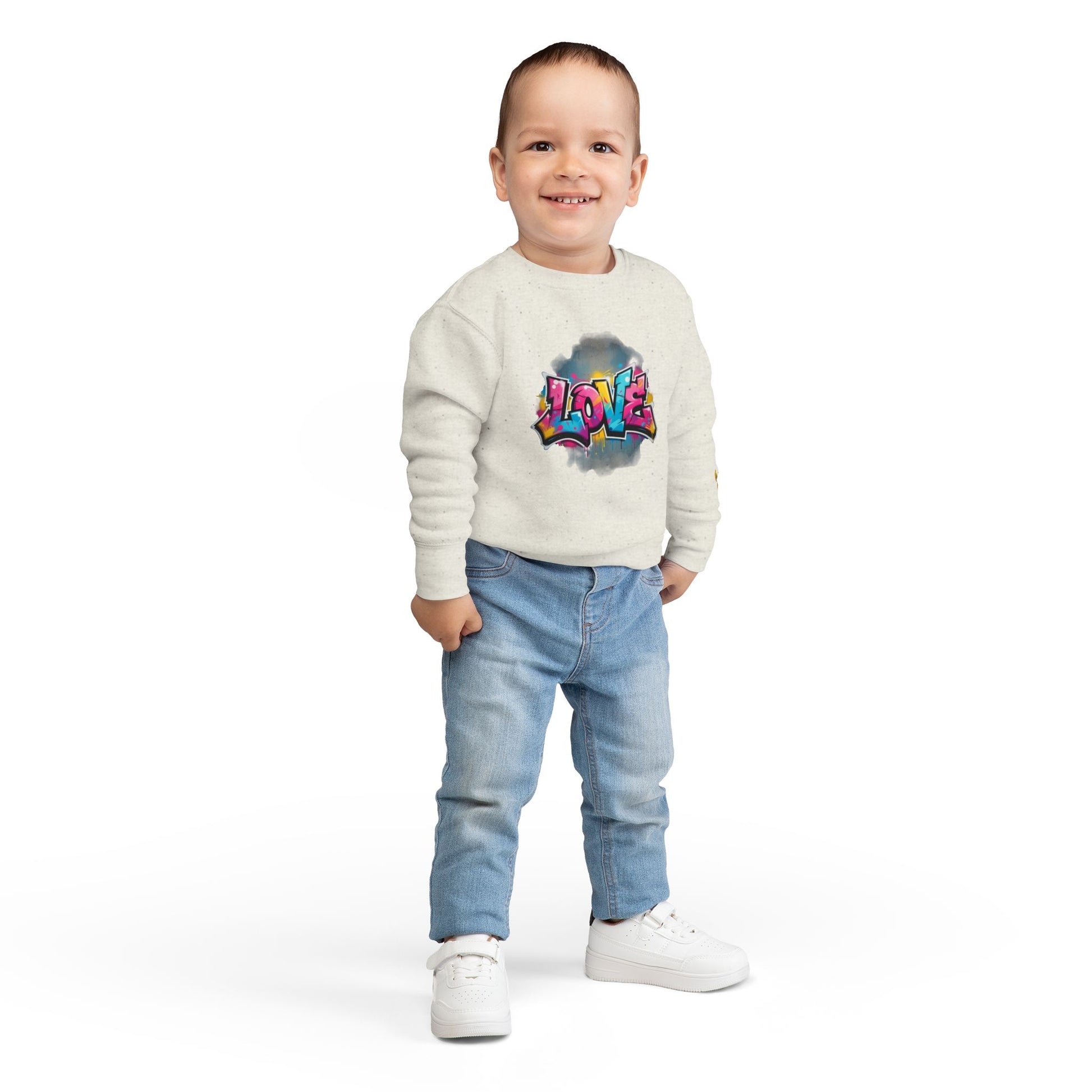 Phoenix Toddler Sweatshirt - Colorful Graffiti "LOVE" Crewneck for Kids